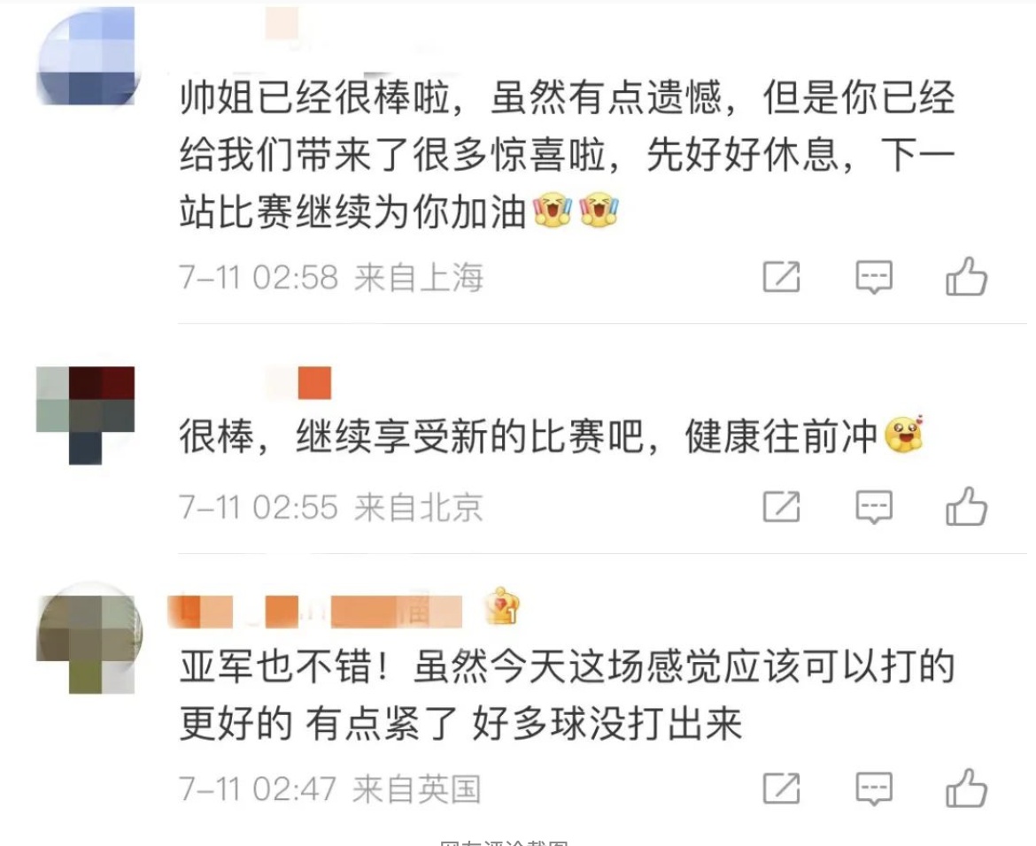 虽然有些遗憾,但对于张帅来说,在本届温网已经制造出了足够多的惊喜。不少网友面对这个结果很豁达。
