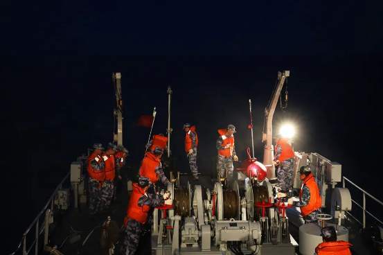 编队各舰艇还组织离靠漂泊舰训练