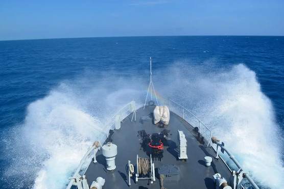 向着南海某海域踏浪而行