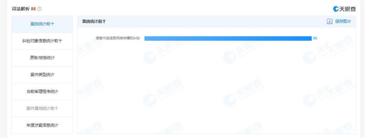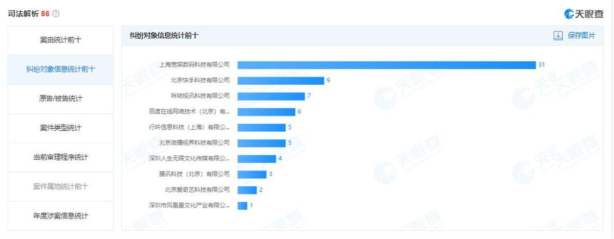 天眼查APP显示,成都游术文化传播有限公司从2022年4月起对相关公司密集展开起诉,涉及的86起诉讼案件均为原告身份,案由全部为“侵害作品信息网络传播权纠纷”,被起诉的对象包括快手、百度、腾讯、爱奇艺等头部互联网公司。