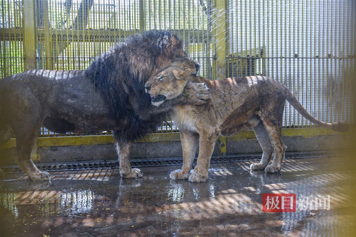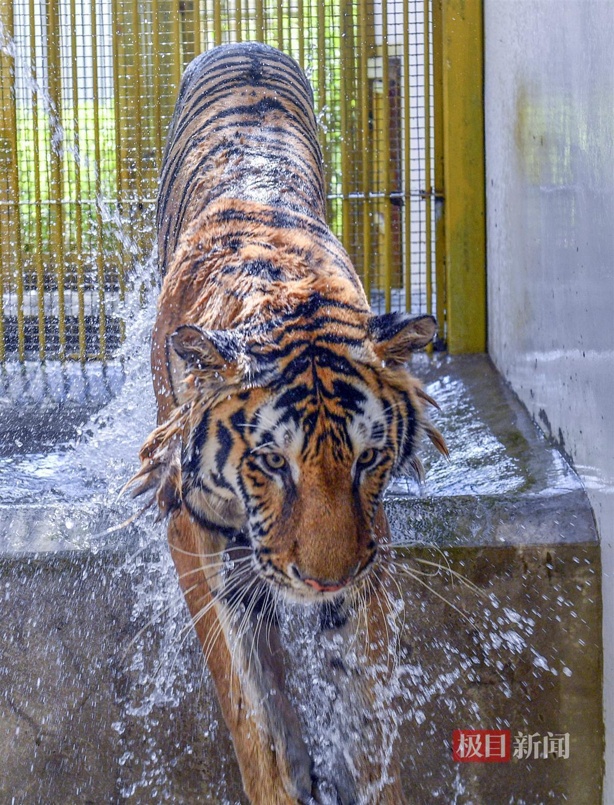 “‘大虎子’,过来冲凉!”饲养员熊智用武汉话朝一头东北虎喊话。