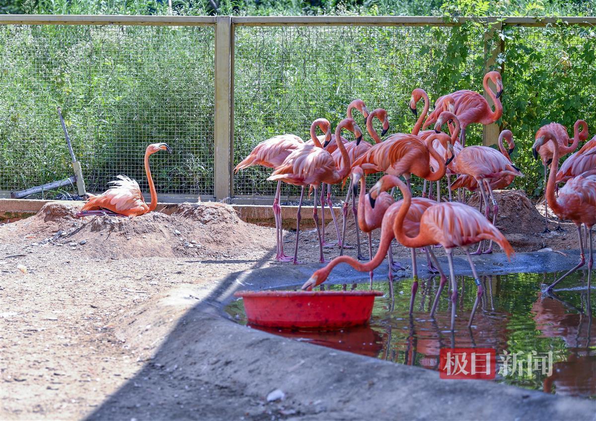 最令人感动的是,在部分动物避暑纳凉之时,一只火烈鸟烈日下辛勤地孵化小宝宝。火烈鸟是非洲动物,不怕热,有水池就行,但在骄阳下坚守阵地,必须为它点赞。