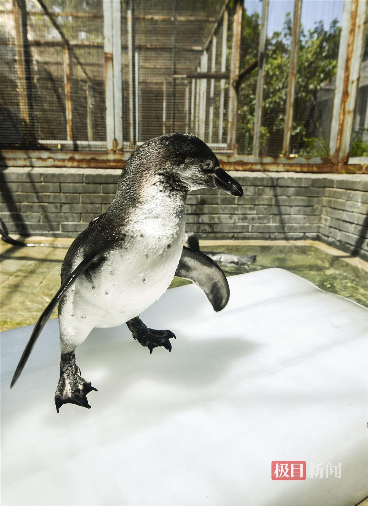 企鹅既有空调房,又有游泳池;河马在大水池中泡澡,乐享饲养员宋文斌投喂的西瓜。