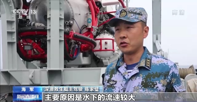 深潜救生艇主驾驶 陈家璧:我们与潜艇进行对接难度就非常大,主要原因是水下的流速较大,在潜艇救生平台的周围形成了众多的紊流,再加上能见度较差,这样对操纵员的操纵水平提出了更高的要求。我们抓住不到一秒的有利对接时间,迅速进行对接,在水下建立救援通道,成功地将艇员转移至救生艇内。