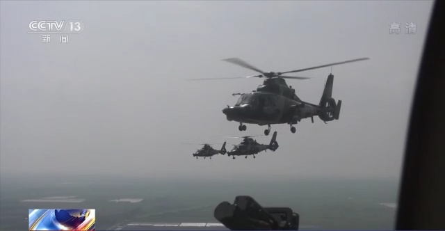 清晨,接到起飞指令后,直9、直19等多型直升机按编组从野战机场升空。出航不久,陆地与海洋交界上空升起的雾气,增加了目视飞行的难度。