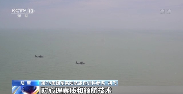 第78集团军某陆航旅作训科参谋 胡飞:低高度、大速度海上突防时,飞行员对高度的判断容易产生误差,危及飞行安全。同时在海上飞行,可供参考的地标少,飞行员孤独感较强,对心理素质和领航技术提出了更高的要求。