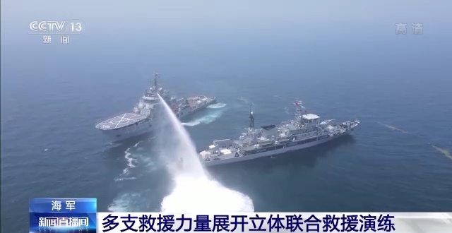 救援编队指挥员 杜长余:这一次军地海上联合救援演练,出动了十余艘水面舰艇、潜艇和两架无人机,是近年来出动兵力规模最大的一次演练;从指挥所组织指挥到各战位末端具体救援,均按实战标准全流程全要素展开,通过演练有效提高了防救兵力组织指挥和联合救援能力。