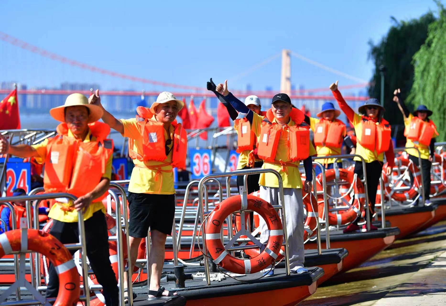 此外,7月16日当天,邀请2022武汉“小江豚”游泳节获奖的青少年运动员、武汉市各大泳池代表、渡江节网络互动幸运粉丝登观礼船,共同观摩江城“泳士”风采。