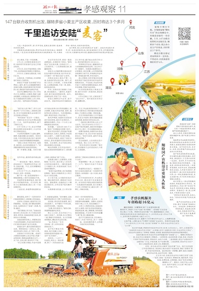 6月15日湖北日报微信公众号《千里追访,我们记录下这群湖北“麦客”的一天》