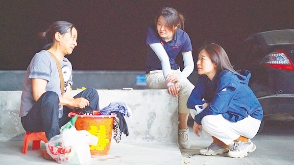 湖北日报全媒记者胡琼瑶(右一)、刘宇(右二)深夜采访麦客。 (湖北日报全媒记者 吴坚 摄)