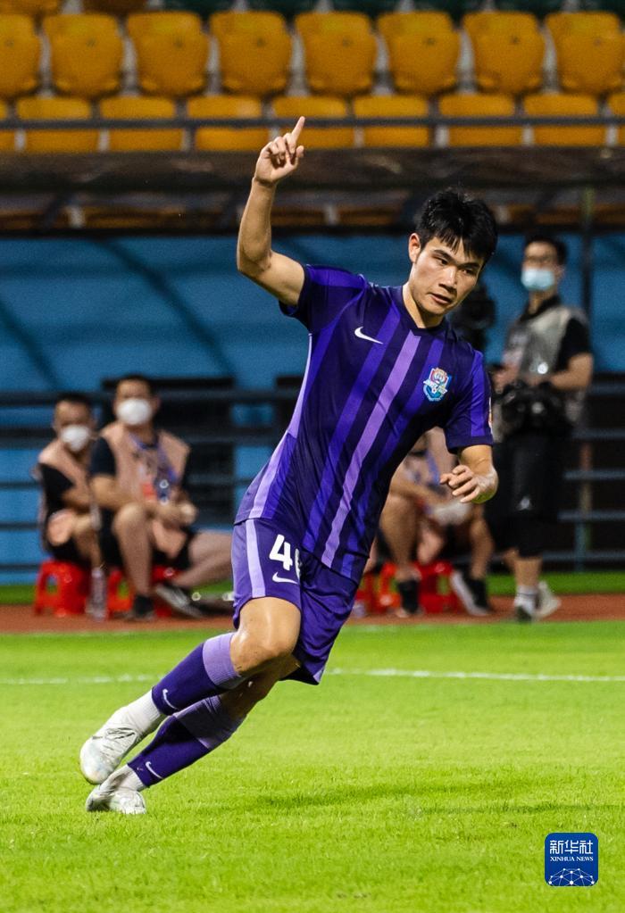 7月12日,天津津门虎队球员石炎在比赛中庆祝进球。新华社记者 王冠森 摄