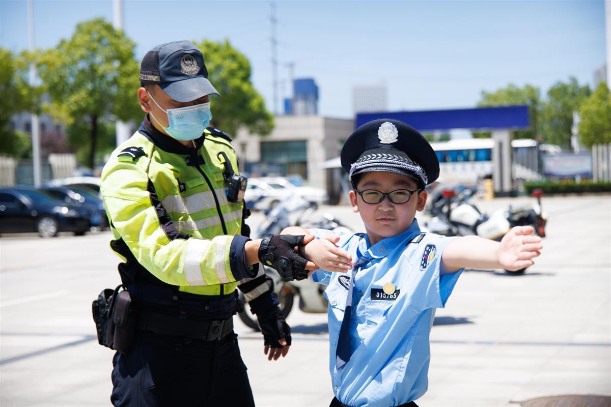 接下来,东西湖交警用深入浅出的故事以及互动方式,向“小警察”们讲解了电动车安全骑行、“一盔一带”等交通安全知识。“小警察”们跟着交警叔叔学习交通手势操,一招一式都学得那么认真,体验了一把交警的帅气与不易。