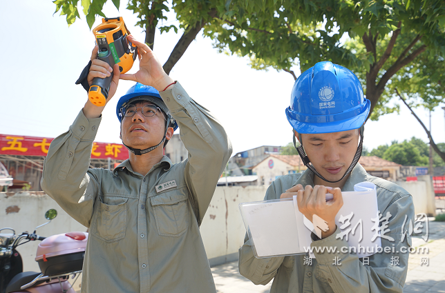 该公司运检班工作负责人吴天豪带着班员田漫霁、姜萌一行三人,前往当天“战高温、保供电”的第一站10千伏沌阳线一处施工现场。