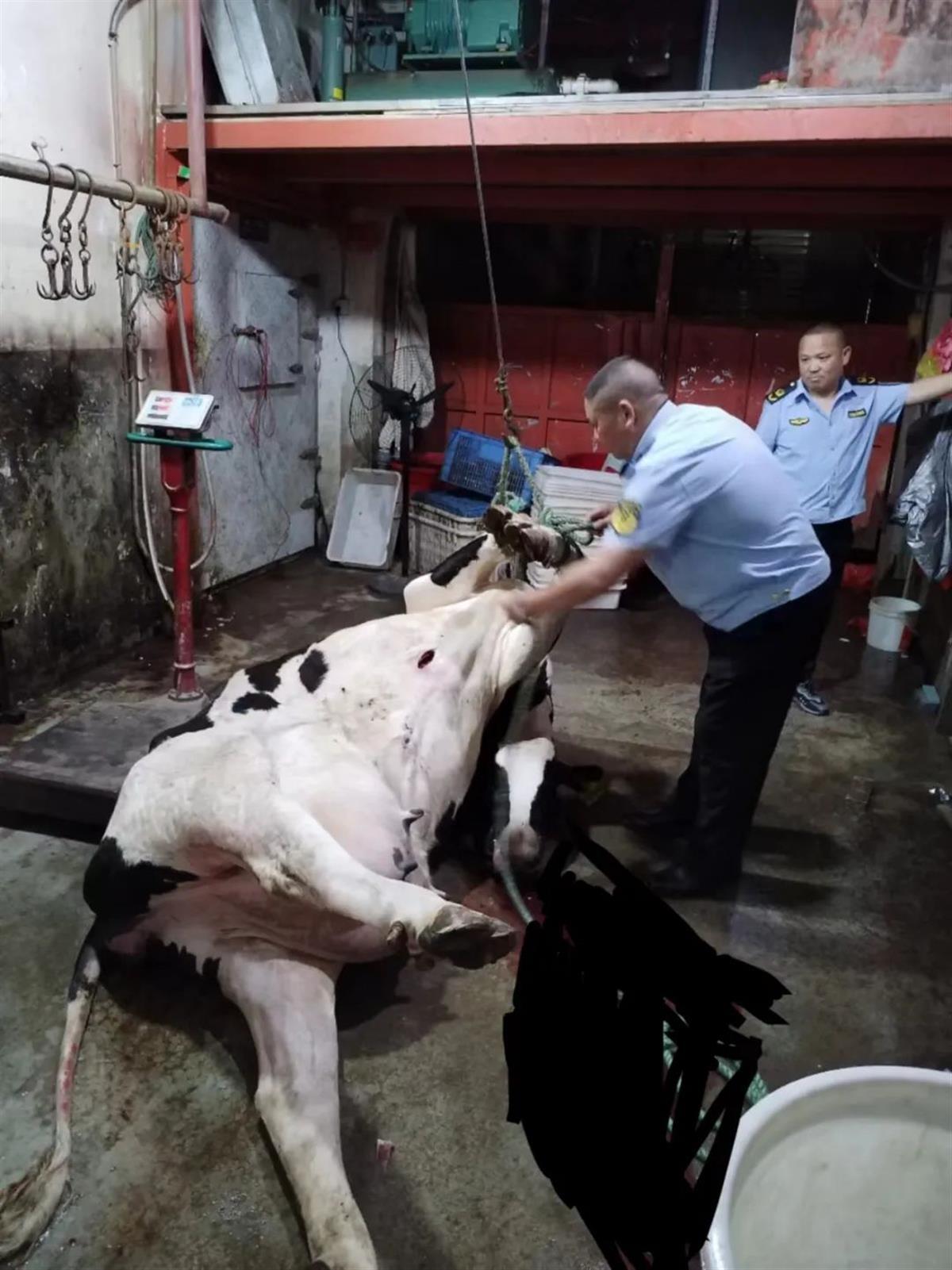 随后,该所执法人员将牛肉过磅称重,经现场检定,涉案奶牛毛重500余公斤。西城市场监管当场下达了《实施行政强制措施决定书》,依法查封扣押了涉案奶牛。