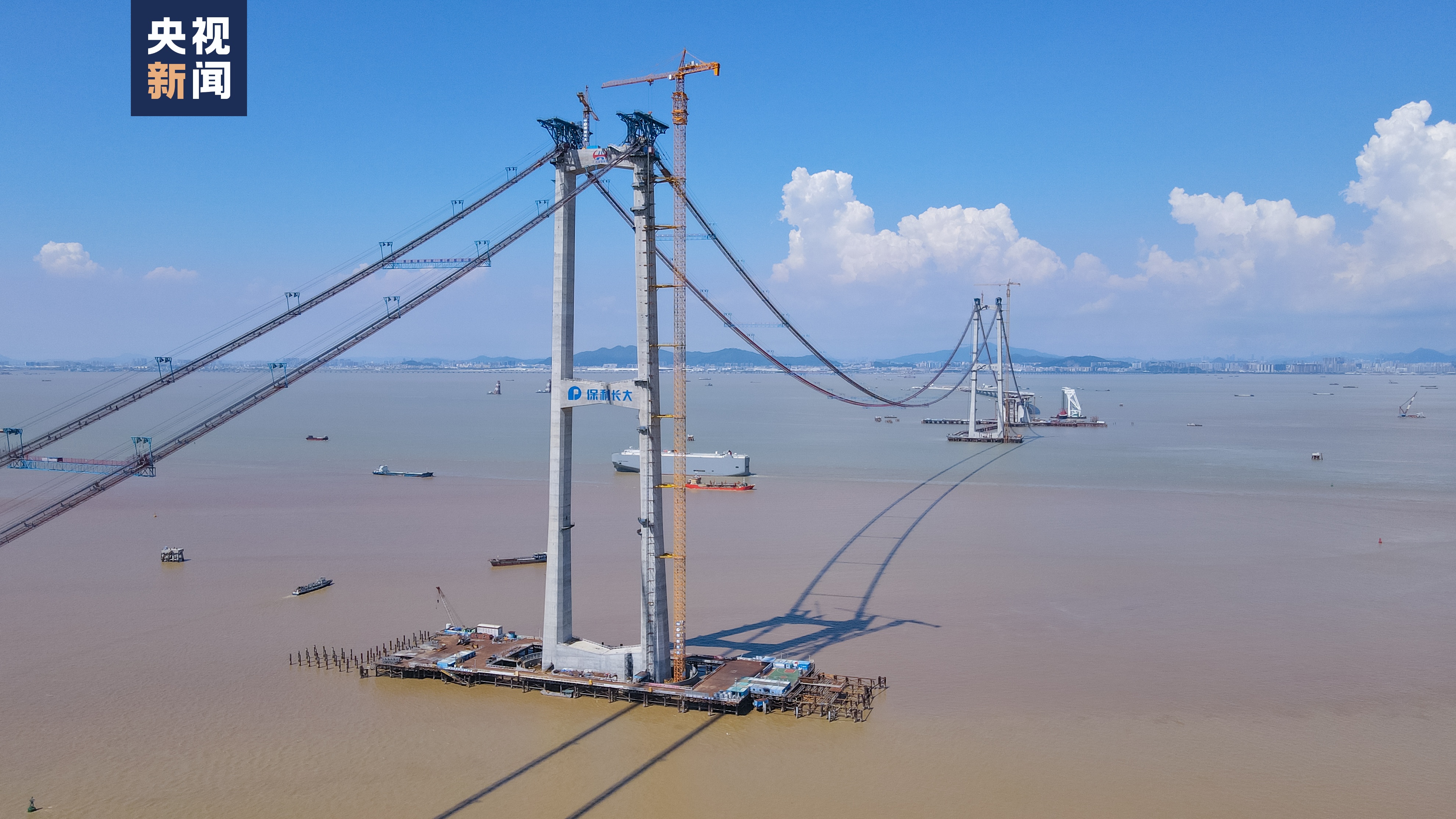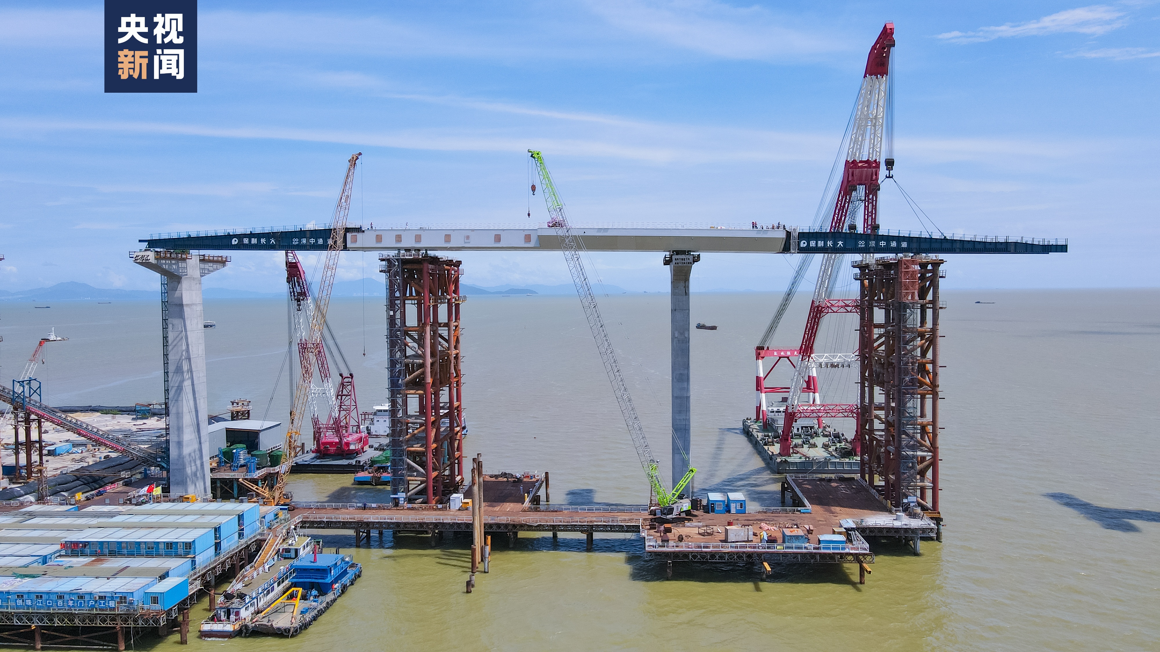 目前,深中通道伶仃洋大桥西锚碇区域钢箱梁安装施工,正在按照计划稳步推进,将在今年10月底完成全部6片钢箱梁的顶推施工作业。