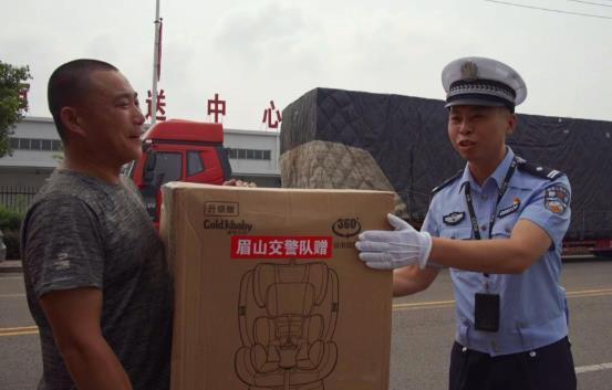 7月13日,这份诺言兑现了。在等待装货的途中,周师傅和妻女与眉山公安交警见上了面。一见面,眉山公安交警就将儿童安全座椅送给了周师傅。