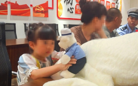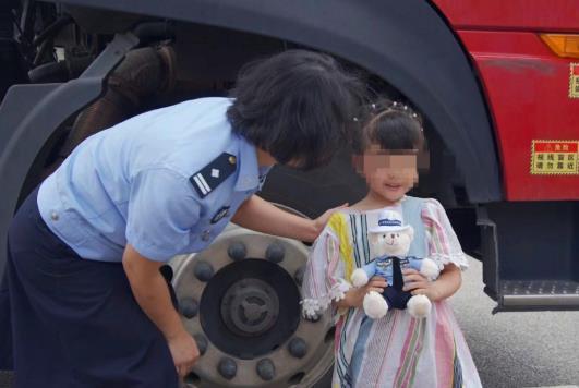 交警说:“以后你出去玩,把这个小熊带着,就相当于交警阿姨在陪着你,好不好?”听到这话,小女孩重重地点了点头,大声说“嗯”。