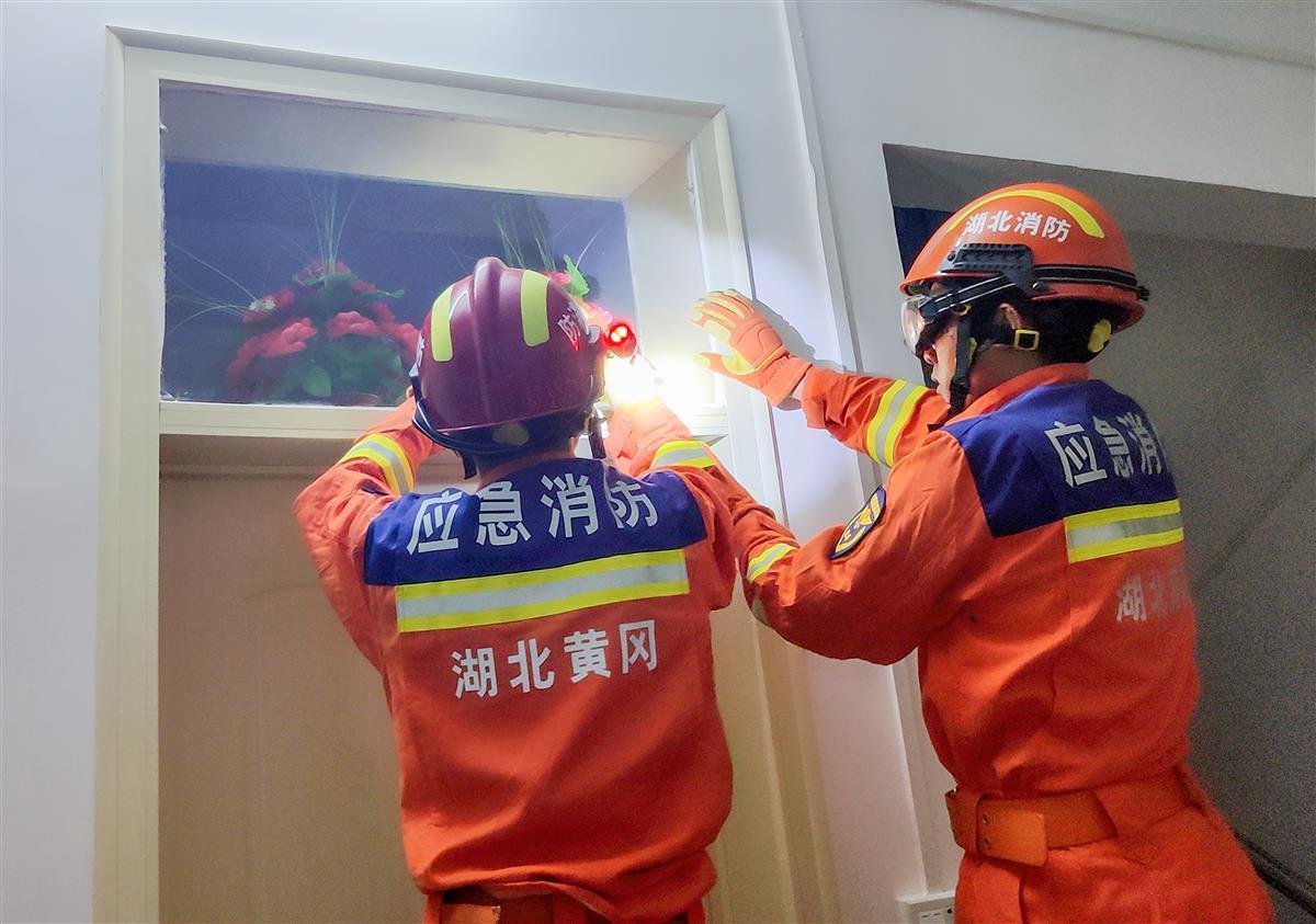 7月15日傍晚,黄冈市麻城黄土岗镇熊家冲,一名5岁的女童反锁卧室门时被困屋内,辖区消防救援站接警后迅速将孩子救出。