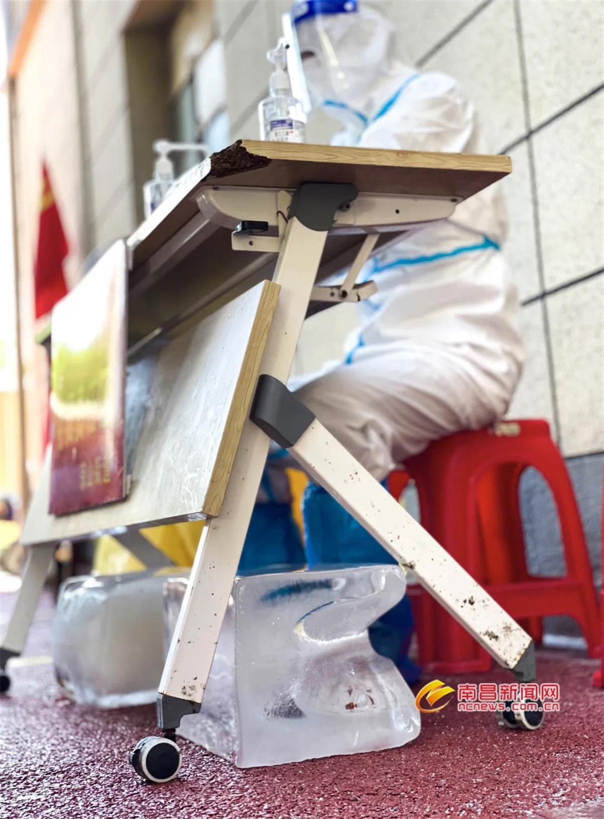 南昌当地用冰块给医务人员降温