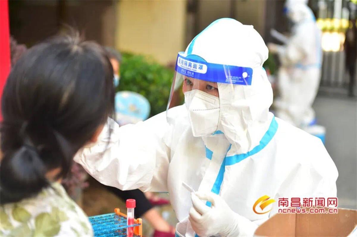16日,据南昌市卫生健康委主任朱世鸣介绍,南昌的采样人员已累计完成2438.29万采样任务。为了防止医务人员中暑,南昌开始落实防暑降温措施,规定室外采样人员不再穿防护服采样,而是改穿一次性隔离衣。采样人员一小时换岗,并通过安置制冷机、风扇、冰块放在医务人员周围帮助降温;采样点配备藿香正气水等防暑药品和生活物资。