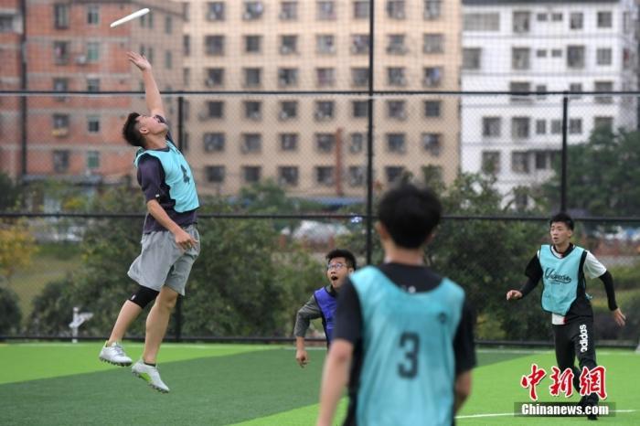 资料图:学生组队进行极限飞盘比赛。 中新社记者 王东明 摄