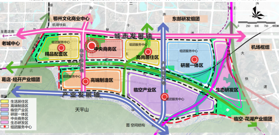 时间回到2019年3月,鄂州临空经济区获省政府批复。根据规划,依托花湖机场,鄂州临空区将建设“一港五区”功能组团,打造一座生态宜居的智慧空港新城。