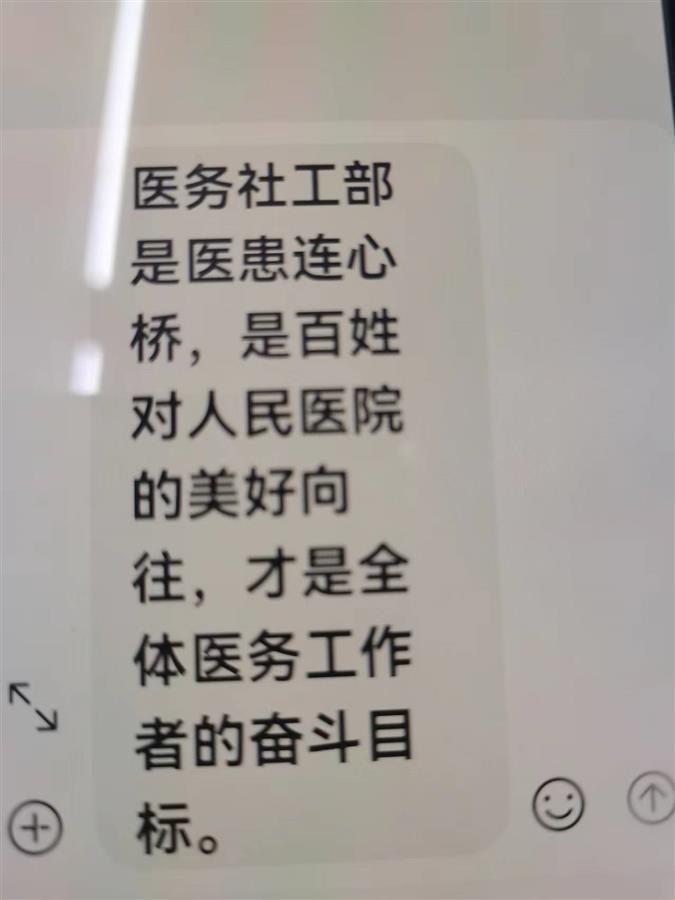 “能化解患者和医生之间的隔阂,为医患关系架起一座信任的桥梁,真正体现了医务社工的价值和意义。”事后,拿着黄婆婆的感谢信,殷承英欣慰地说道,“我们医院的领导经常说‘第一人民医院’是基层医院,是为广大的普通民众服务的,所以才叫‘人民医院’嘛……”