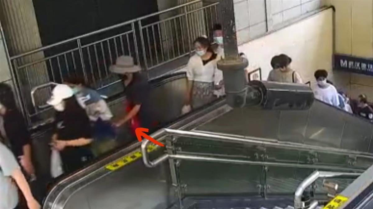 监控视频显示,在站内运行的扶梯上,紧随李女士身后的一名头戴礼帽、身穿深色衬衣短裤、手拿红色包的男子,在扶梯上行的过程中,趁李女士和同伴说话的时机,将手伸进了她的口袋,迅速偷走手机后,离开了现场。