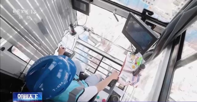 塔吊是工地上最高的作业点,要先坐电梯,再走楼梯,最后还要徒手攀爬30多米高的塔吊架。每上去一次,就得在2平方米左右的操作室里待上五六个小时。