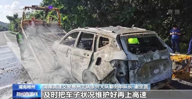湖南高速交警郴州支队永兴大队勤务中队长 谢余贤:随着夏季高温的到来,(司机朋友)出门前请注意检查车辆状况,如果发现异常,及时把车子状况维护好再上高速,以免发生车辆自燃等其他意外情况,确保自己的出行平安。