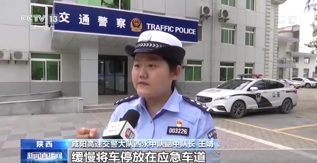 咸阳高速交警大队西永中队副中队长 王婧:看好左右两边是否有障碍物,缓慢将车停放在应急车道。随后,车上的人员赶紧下车,到护栏外的安全地带,并且在车辆的后方150米处摆放那个三角警示标志,之后报警或者是自行联系拖车下高速。