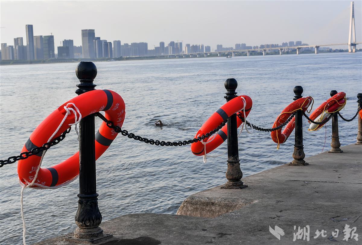 据了解,入夏以来,在江边野游和玩水的市民增多,武汉市江滩管理办公室等相关部门在开展安全知识宣传同时,在江滩沿线安放了救生设施及用具。