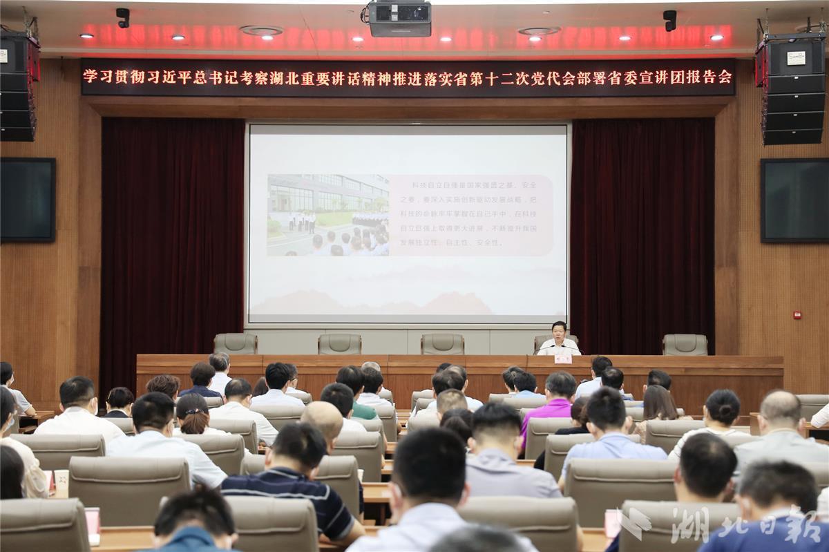 湖北日报讯(记者黄璐)7月19日,省委宣传部举行学习贯彻习近平总书记考察湖北重要讲话精神推进落实省第十二次党代会部署宣讲报告会,省委宣讲团成员、省委宣传部常务副部长邓务贵作宣讲报告。