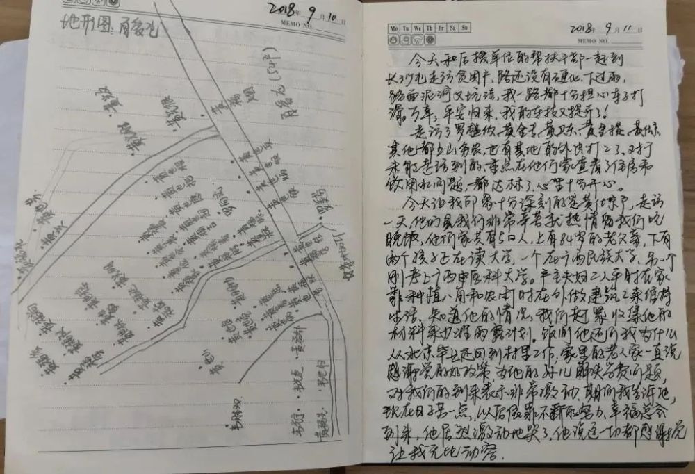 她还在驻村日记中手绘“民情地图”