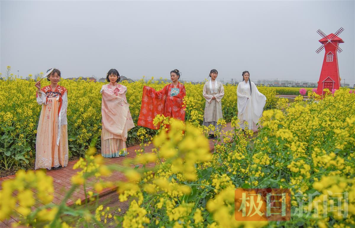 汉服爱好者在江陵县资市镇油菜花海中巡游(极目新闻记者黄志刚摄)