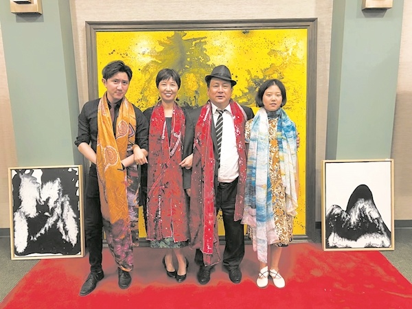 贺鹏飞陈绍敏伉俪和一双儿女在贺鹏飞画展上