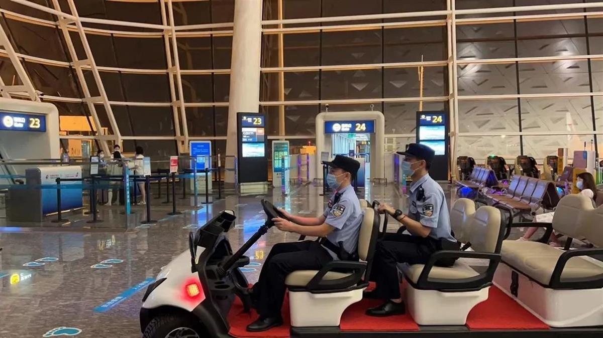 日前,天河机场客流量持续增长,为全面维护航站楼治安稳定,民警在航站楼出发大厅值机柜台、到达大厅各出入口等处通过步巡、车巡相结合的方式展开夜间巡逻,强化巡查管控。