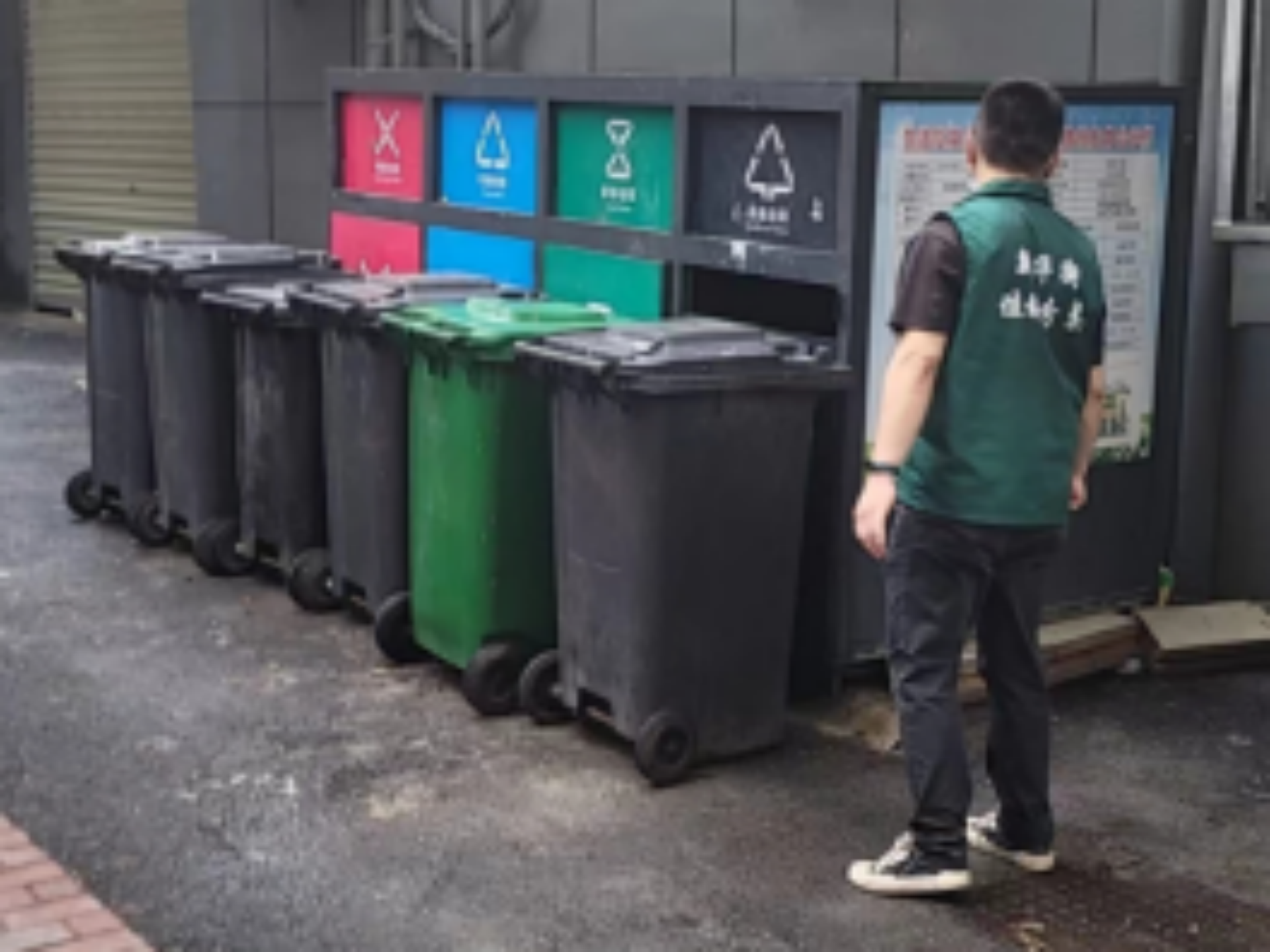 上午10点离开时,他们将垃圾分类点位的地认真地拖了两遍:“我们的垃圾投放点位干净整洁,居民就会跟着保持。”