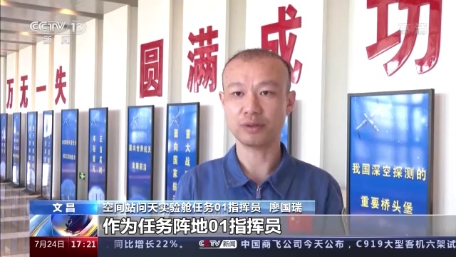 空间站问天实验舱任务01指挥员 廖国瑞:作为任务阵地01指挥员,我将和所有岗位人员一起,精心完成好每一项测试操作,精准下达每一项口令,清晰判读好每一项数据,坚决圆满完成中国空间站建造任务。