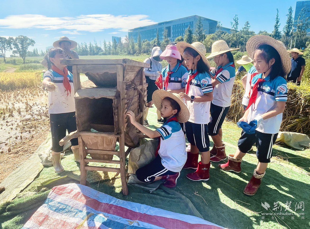 荆楚网(湖北日报网)讯(实习生吴子怡 通讯员宋晓芳)“风吹稻浪,金穗垂首,稻谷飘香,收获希望。”7月22日上午,一群优秀少先队员在老师带领下,走进武汉东湖高新区九峰一路花田花海的稻田研学基地,开展“小劳动 大成长”水稻收割劳动实践研学活动。在花海稻田中,同学们体验了“割稻谷、打捆、脱谷粒、筛谷子”等一系列活动,亲身体验劳动的辛苦,近距离接触农作物,树立正确的劳动观,养成良好的劳动习惯和品质。