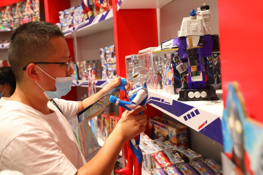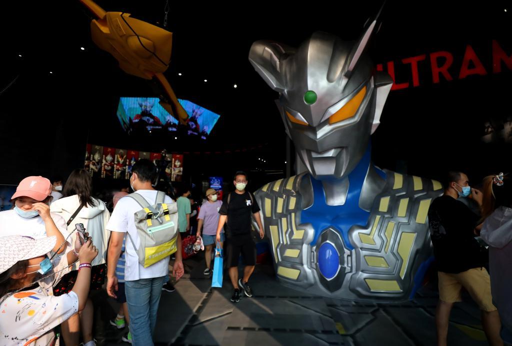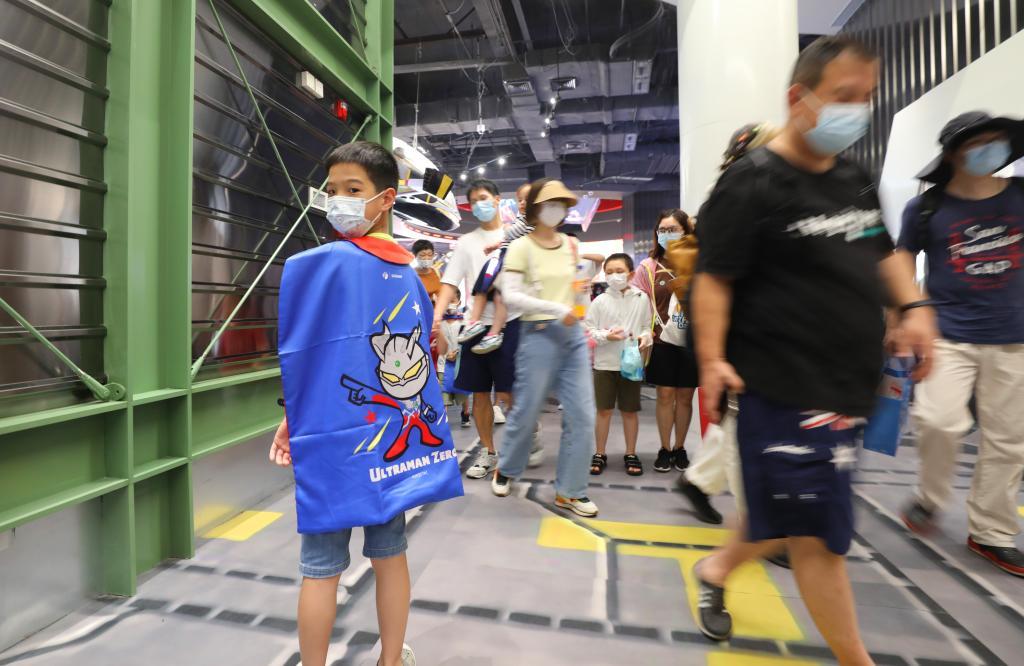7月24日,参观者在奥特曼主题馆参观。