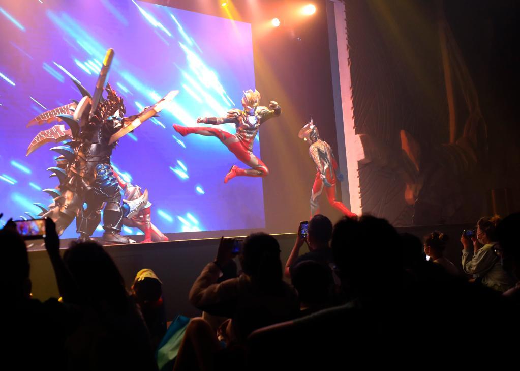 7月24日,观众在剧场观看奥特曼主题演出。