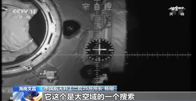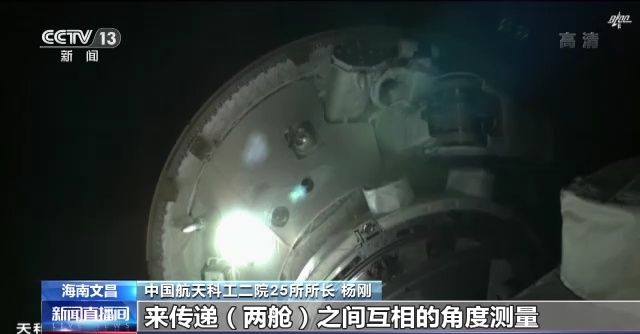 中国航天科工二院25所所长 杨刚:微波雷达在问天实验舱上,应答机是在天和核心舱上。然后这两边是进行不断的持续稳定的通信,来传递两舱之间互相的角度测量、速度测量,还有距离测量的信息。在距离核心舱100多公里的时候就实现了开机,同时实现了稳定的测量和通信的功能,一直工作到大概两个航天器传输到几米的时候,它的任务才基本完成。