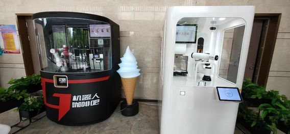 在更酷科技公司总部楼下,摆放着几台冰淇淋机器人展示样机,造型新颖,显得酷酷的。到这里参观考察的客户,只需要根据页面提示,简单操作,便可感受机器人全自动操作,一只美味的冰淇淋立马可取。