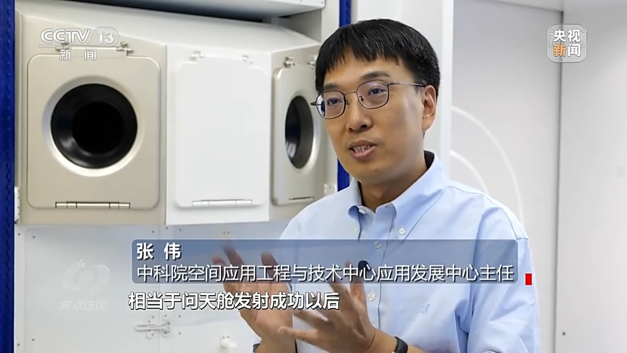 中科院空间应用工程与技术中心应用发展中心主任 张伟:问天舱实际上是真正第一个实验舱,包括生命生态、生物技术、混变重力还有手套箱这四个科学实验柜,问天舱发射成功以后将可以支持开展大量科学实验了。