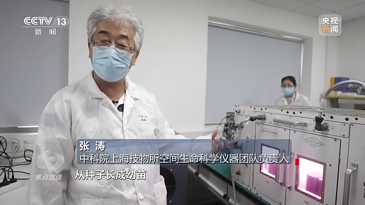 中科院上海技物所空间生命科学仪器团队负责人 张涛:科学的目标是希望在微重力环境条件下,从种子长成幼苗,到长成植株,最后开花结籽,在天上是微重力,可能还有辐射,地面没有这些因素,生长的周期、结果,甚至开花的周期,结籽的情况都会有差异,从过程来说,对科学研究是很有价值的。