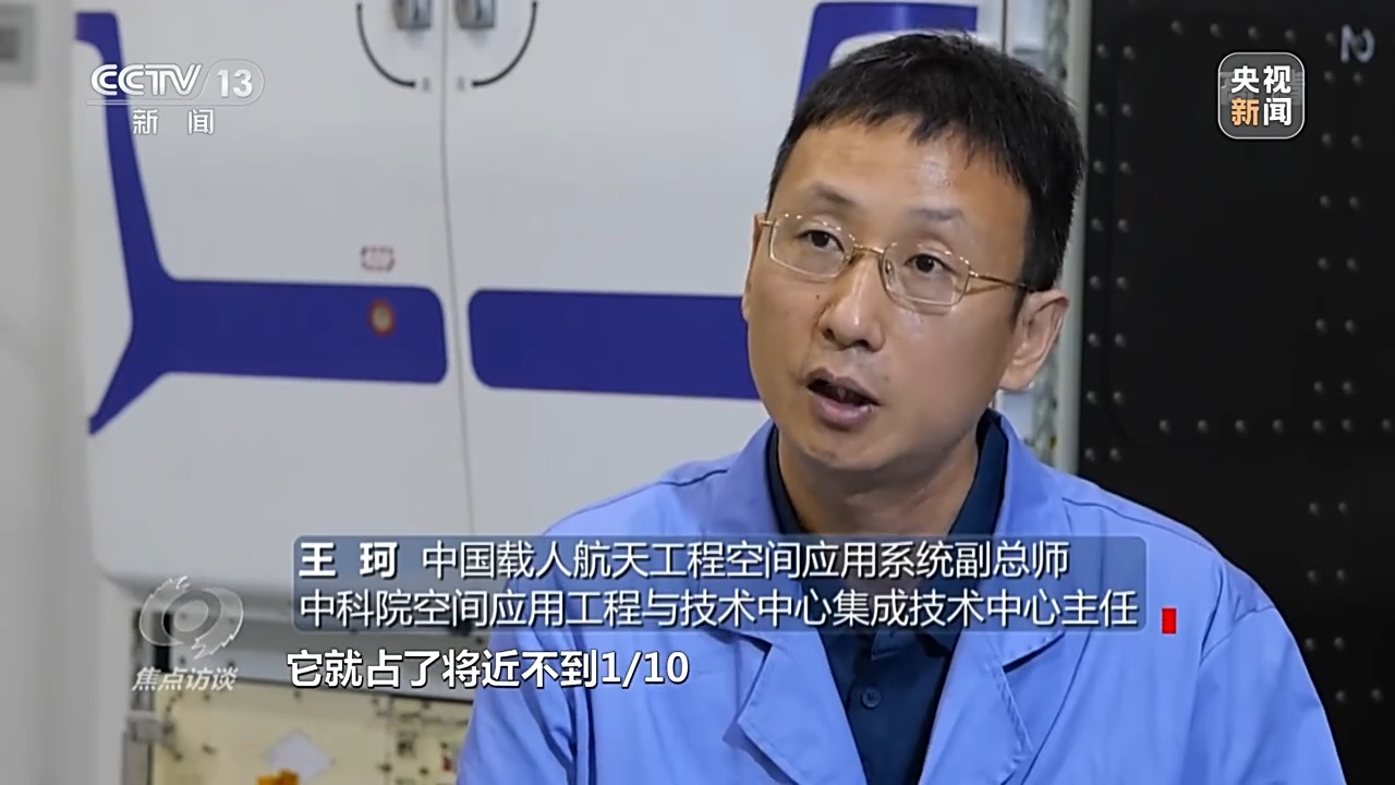 中国载人航天工程空间应用系统副总师、中科院空间应用工程与技术中心集成技术中心主任 王珂:在天宫一号的时候,目标飞行器有一个生命科学实验,当时花了好几十公斤的代价,整个任务不到五百公斤,它就占了将近十分之一,只有一个植株。现在放到空间站怎么做呢?只需要把这个植物生长的单元带上去就行了,只几公斤的代价就可以了,光照、环境控制、数据处理,这一系列我们实验柜全部提供,这一个柜就相当于一个领域实验室,一个实验柜可以滚动支持几百项科学实验。