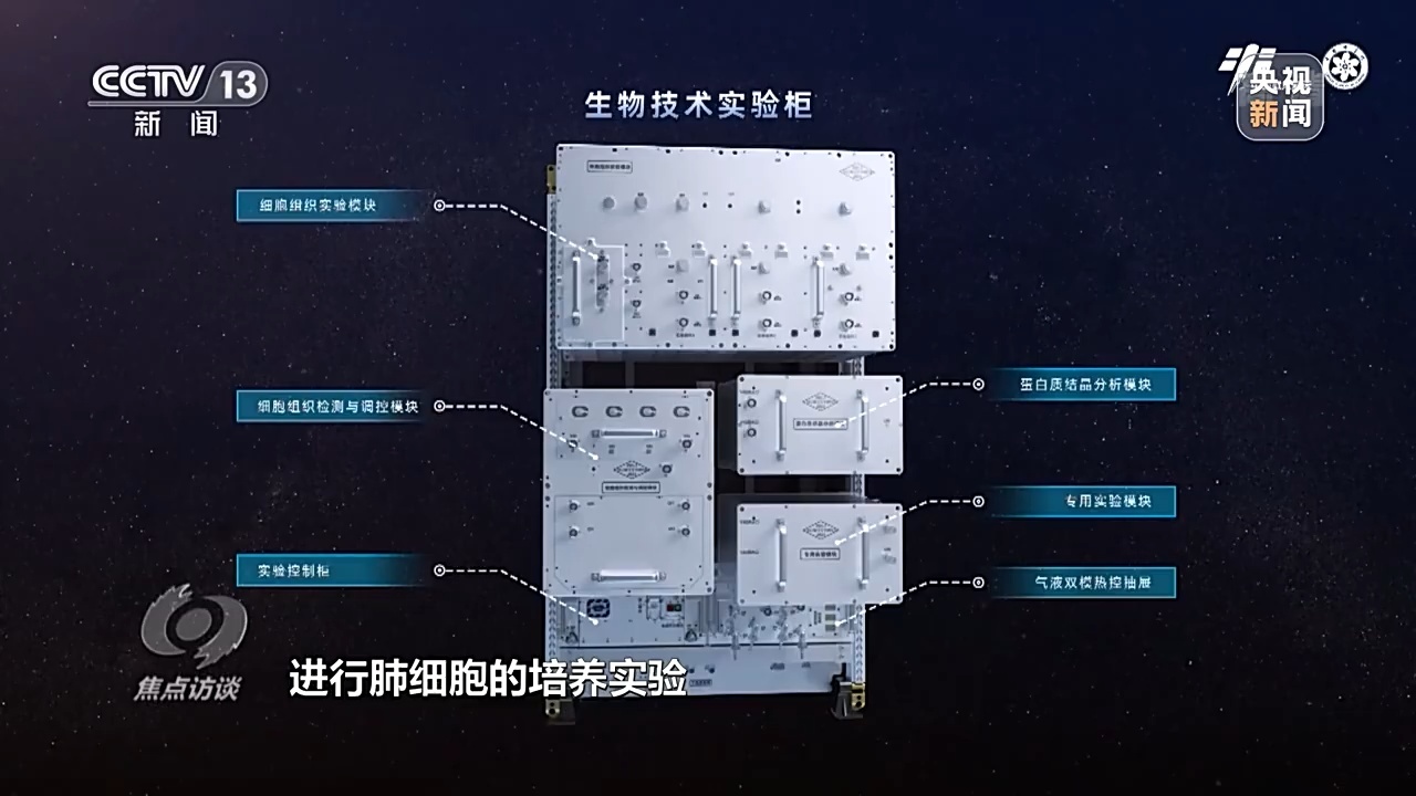 中国科学院空间应用工程与技术中心研究员 仓怀兴:可以开展斑马鱼和金鱼藻,两种生物构成一个非常迷你型的小生态单元研究。还有一个项目,要在上面进行肺细胞的培养实验,有可能天上辐射因素会使肺细胞产生变化,最后演变成肿瘤细胞,从细胞层面来说就是得了癌症了,研究这个也是非常有意义的。