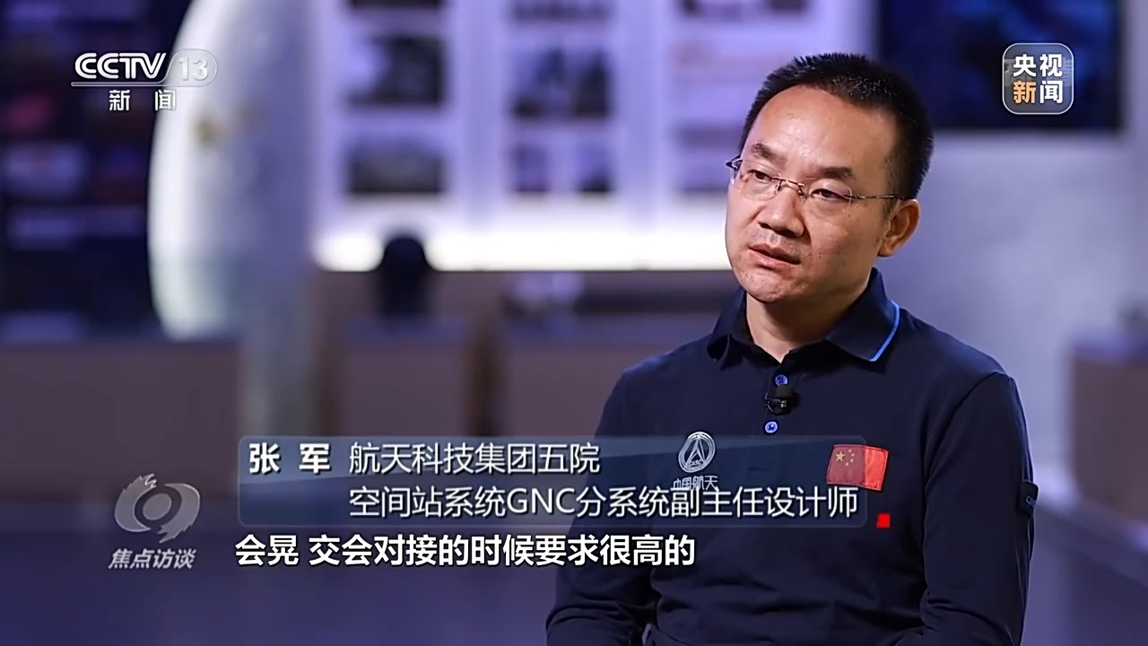 航天科技集团五院空间站系统GNC分系统副主任设计师 张军:会晃,交会对接的对接精度和稳定度指标要求比较高,一旦全部展开,震动非常大,会把指标破坏了。所以在入轨的时候,第一次是处在半展开的状态,形成组合体之后做一个二次展开。