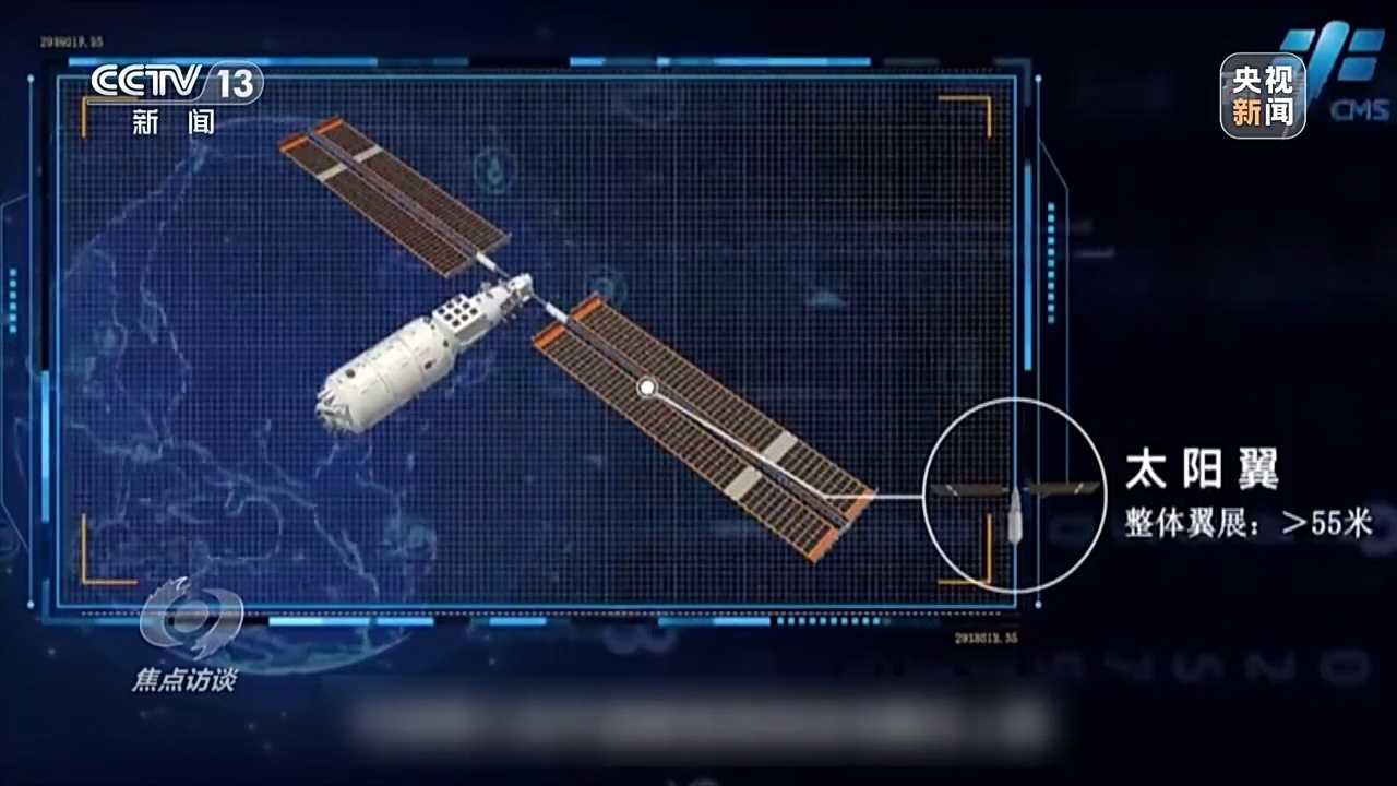 另一个比较紧张的因素来自问天舱的太阳翼。与核心舱一样,问天舱的太阳翼也是由我国自行研制的柔性材料制成。为了保证空间站建成后有足够的能源供应,问天舱自带的太阳翼全部展开后长达55米,相当于20层楼的高度。
